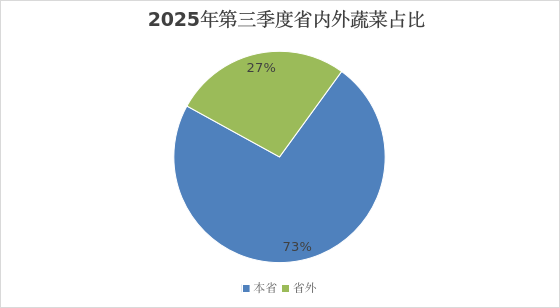 第三季度本市场外省调入的蔬菜约占73%,本省进场蔬菜约占27%。