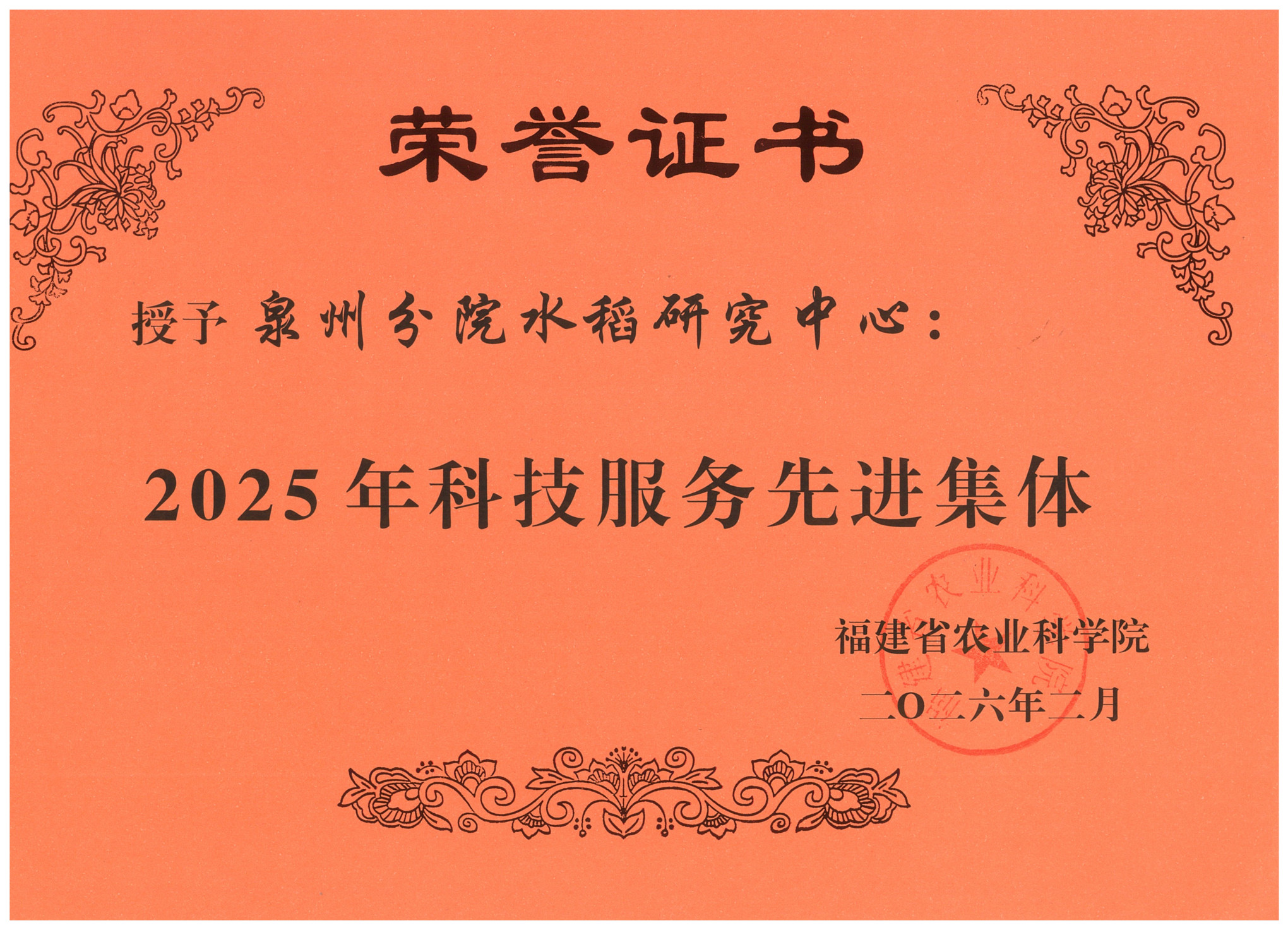 近日,福建省农业科学院公布2025年度表彰决定,泉州市农业科学研究所(福建省农业科学院泉州分院)水稻研究中心荣获省院“四比四促”活动先进集体、科技服务先进集体,以实干实绩展现科研担当。