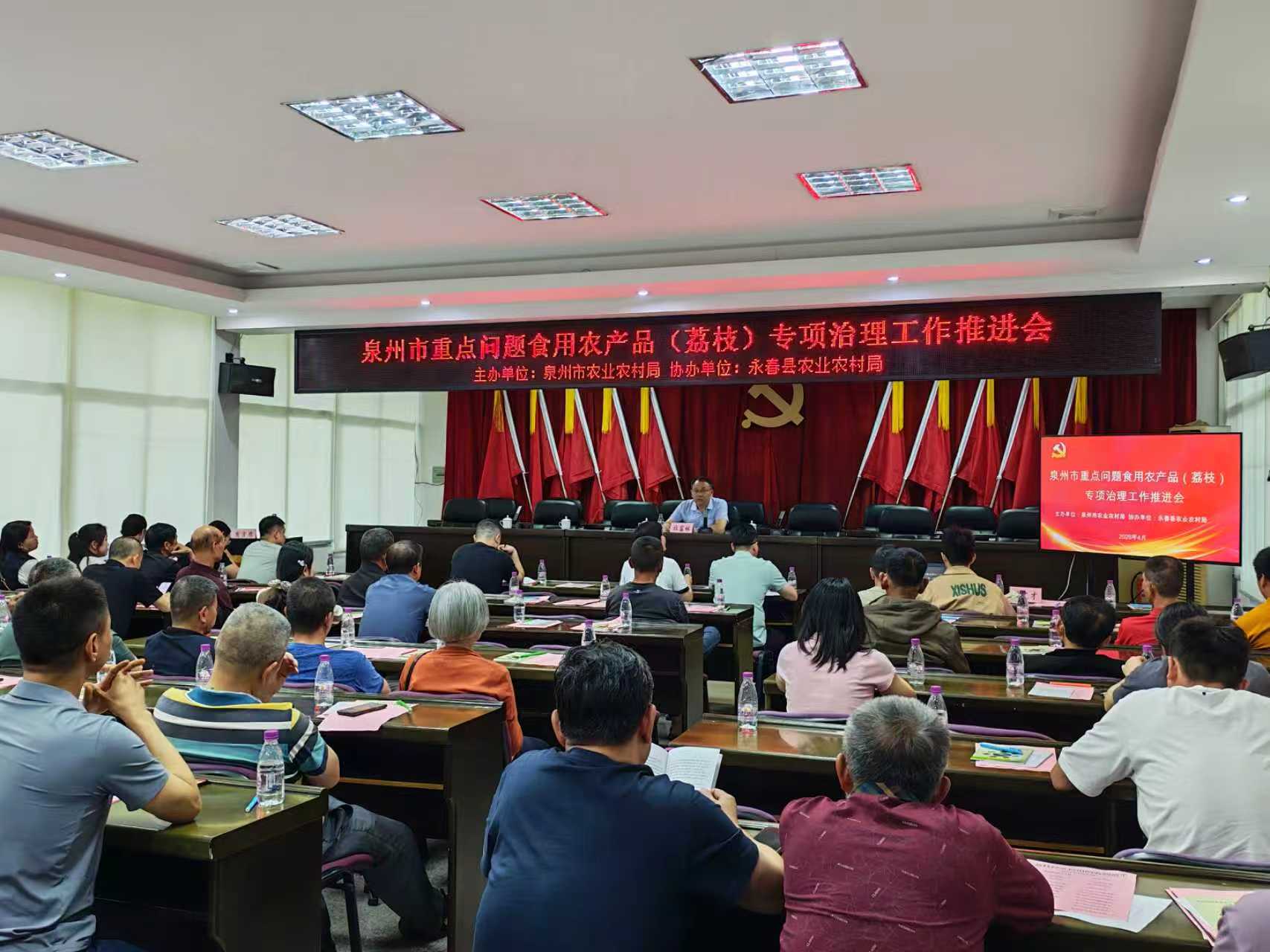 4月21日,泉州市重点问题食用农产品(荔枝)专项治理工作推进会暨荔枝安全用药技术培训会在永春县岵山镇召开,有关县(市、区)农产品质量安全工作负责同志、部分荔枝生产经营主体和农资门店销售人员参加,泉州市农业农村局四级调研员杜富林出席并讲话。