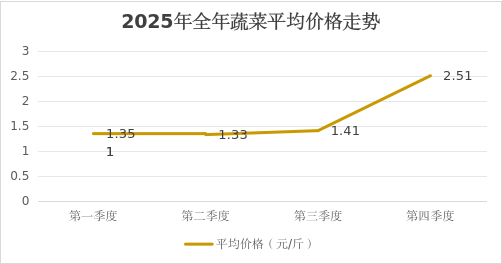第三季度(7-9月):省内持续降雨导致本地蔬菜减产,省外蔬菜运输成本略有上升,价格小幅回升至1.41元/斤,但仍处于低位区间,未出现明显涨价行情。